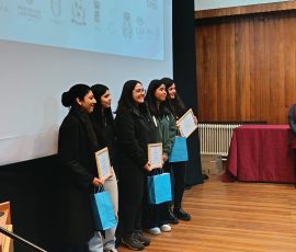 Uno de los momentos más emotivos de la jornada fue el reconocimiento a tres profesoras destacadas por su impacto en la vida de los estudiantes. Javiera Delgado, ex alumna de ALTA UACh que regresó como docente y hoy cursa un Magíster en Paleontología con beca ANID; Cynthia Jara, bióloga marina que guio el proyecto «Aqua Natrium» en el concurso nacional «Los creadores» con alumnas de la Escuela de Talentos; y María Francisca Jara, artista visual que ha contribuido durante 7 años al desarrollo de talentos artísticos en el programa y que recientemente se integró a su equipo de gestión.